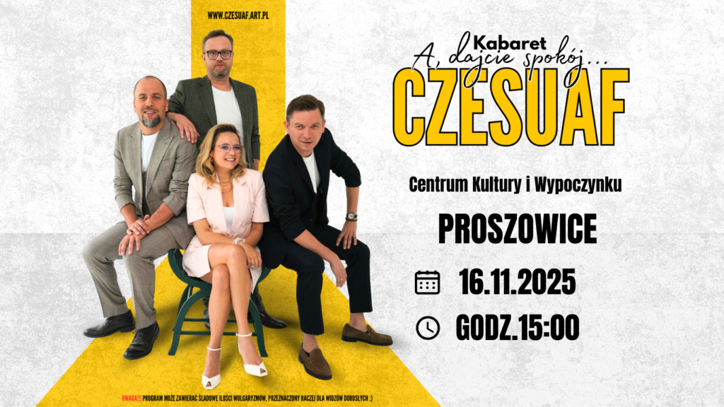 „A dajcie spokój” to tytuł przedstawienia kabaretowego w wykonaniu Kabaretu Czesuaf. Występ grupy zaplanowano na godzinę 15.00 – 16 listopada w Centrum Kultury i Wypoczynku w Proszowicach.