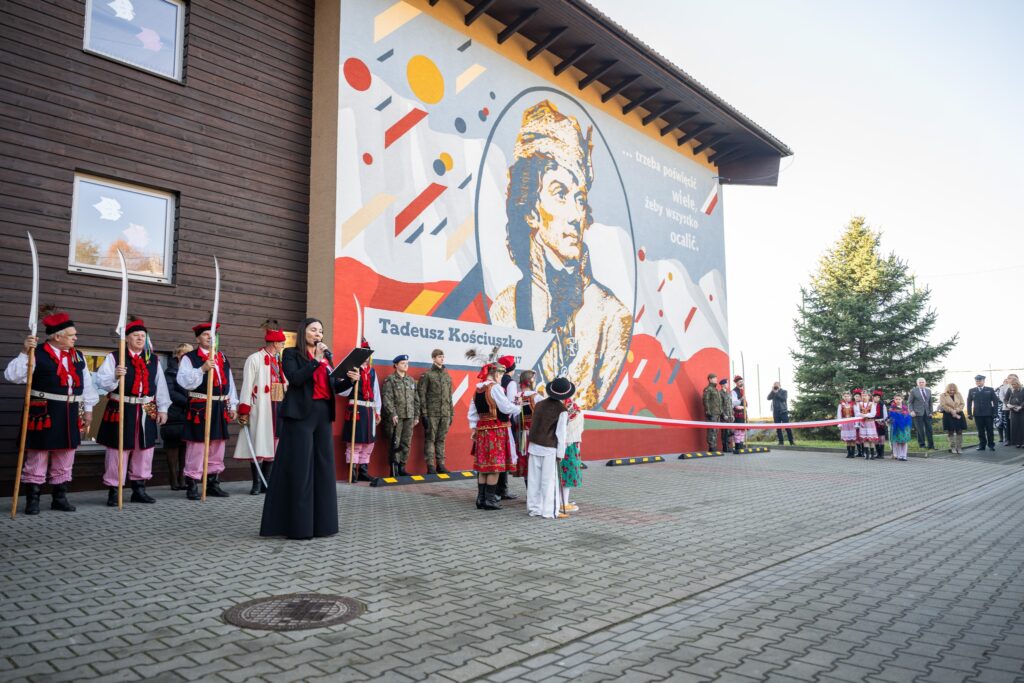 Mural upamiętniający bohatera narodowego, Tadeusza Kościuszkę odsłonięto na ścianie sali sportowej Szkoły Podstawowej im. Tadeusza Kościuszki. Przypomina on o ważnej roli, jaką region proszowicki odegrał w dziejach Polski.