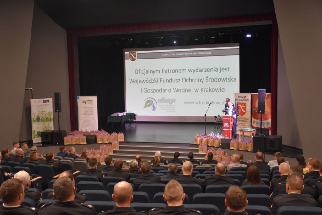 W Centrum Kultury i Wypoczynku w Proszowicach odbyło się dziś spotkanie z przedstawicielami jednostek OSP z terenu całego powiatu. Starosta Wojciech Rzadkowski przekazał druhom 600 czujek tlenku węgla i dymu, zakupionych w ramach projektu „Bezpieczny Dom”, współfinansowanego przez WFOŚiGW w Krakowie