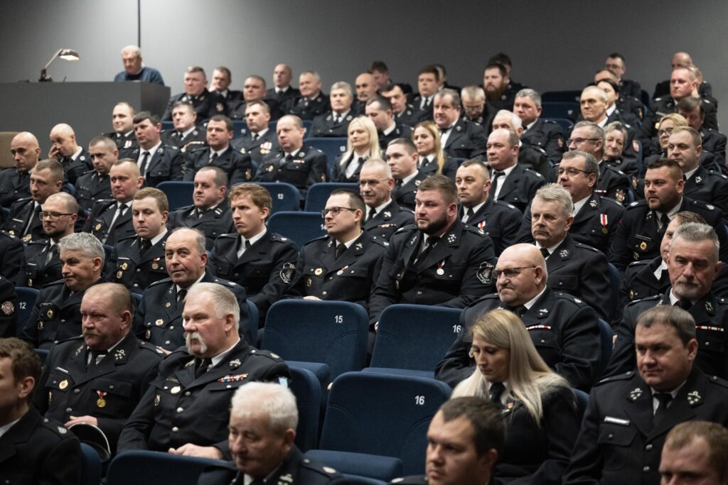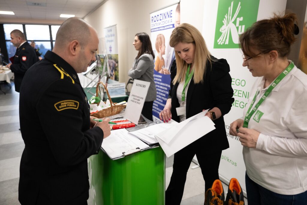 Strażacy oraz zaproszeni goście mogli również skorzystać z punktów informacyjnych zlokalizowanych przed aulą, przygotowanych przez współpracujące służby i instytucje. Stoiska umożliwiały bezpośrednie konsultacje, uzyskanie materiałów informacyjnych oraz omówienie bieżących spraw organizacyjnych i formalnych.