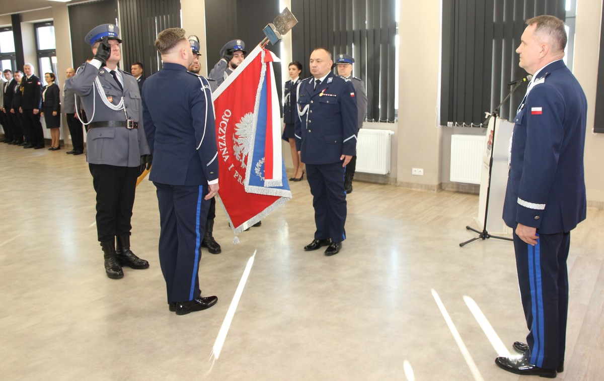 W dalszej części uroczystości ze sztandarem jednostki pożegnał się inspektor Paweł Piętka, a przywitał podinspektor Łukasz Stankiewicz. Następnie Komendanci złożyli Komendantowi Wojewódzkiemu Policji w Krakowie meldunki o zdaniu i objęciu obowiązków służbowych. Na koniec zostały wygłoszone okolicznościowe przemówienia.