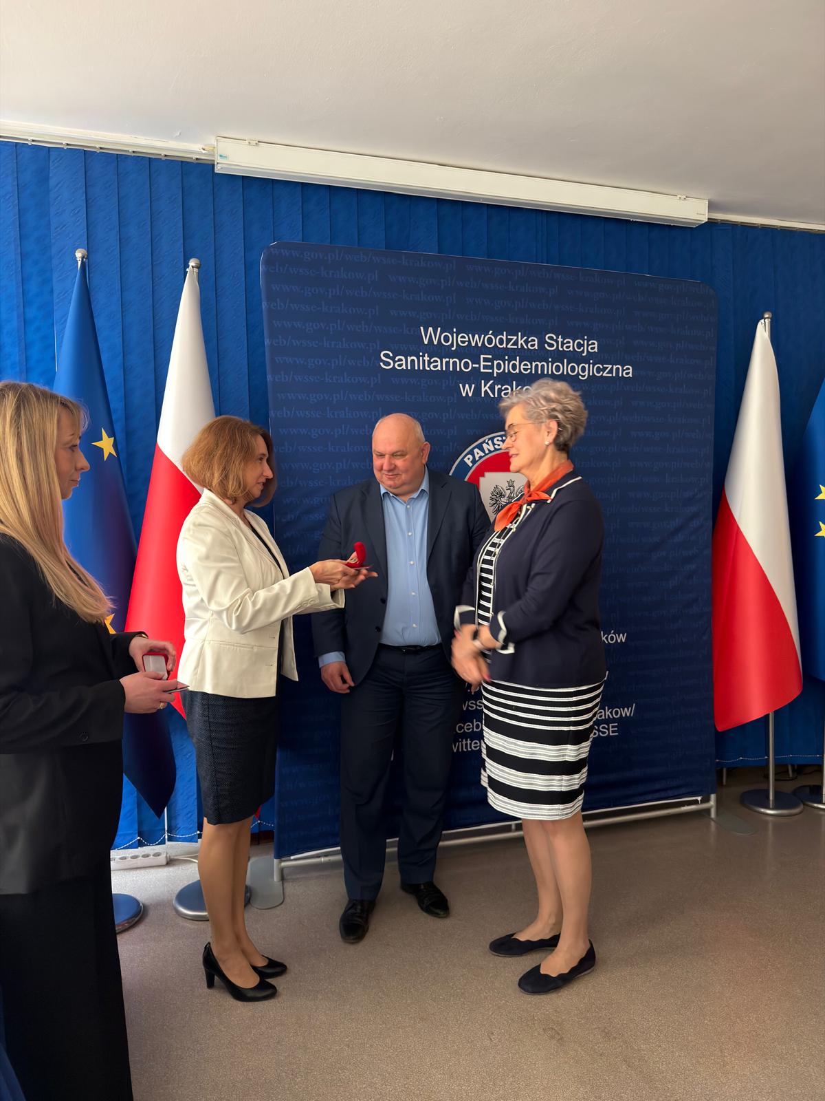 Wyróżnienie pani dyrektor wręczyli: Elżbieta Achinger – I Wicewojewoda Małopolski oraz Andrzej Hawranek – Małopolski Państwowy Wojewódzki Inspektor Sanitarny.