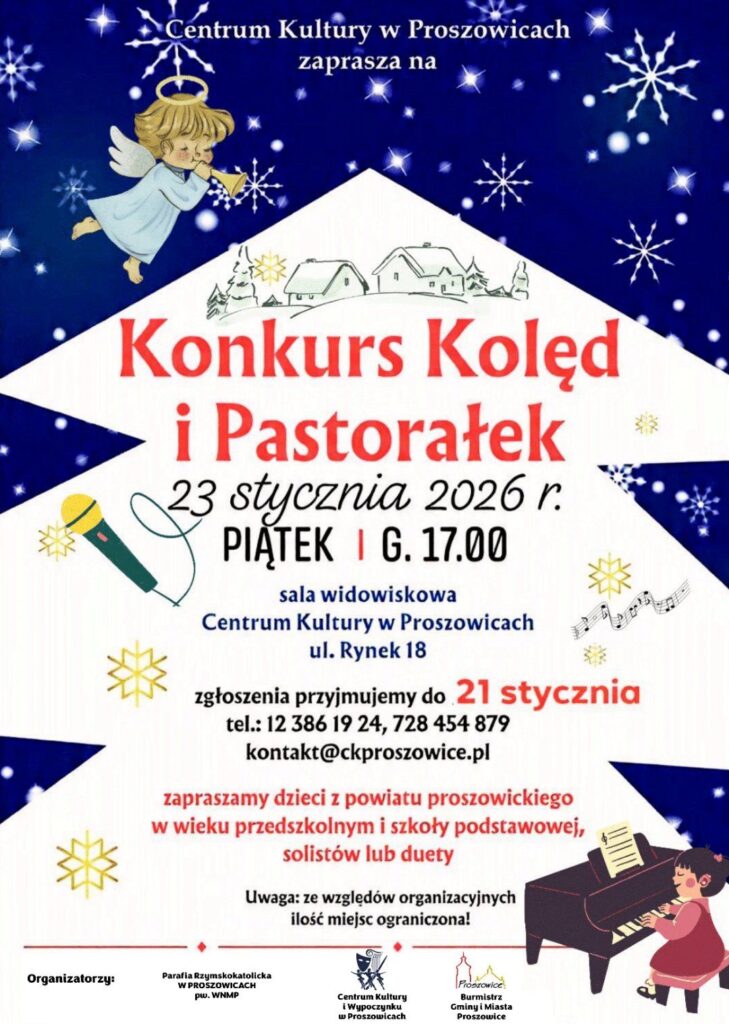 Konkurs odbędzie się w piątek 23 stycznia w sali widowiskowej Centrum Kultury i Wypoczynku w Proszowicach o godz. 17.00. Organizatorzy zapraszają dzieci z powiatu proszowickiego w wieku przedszkolnym oraz uczniów szkół podstawowych.