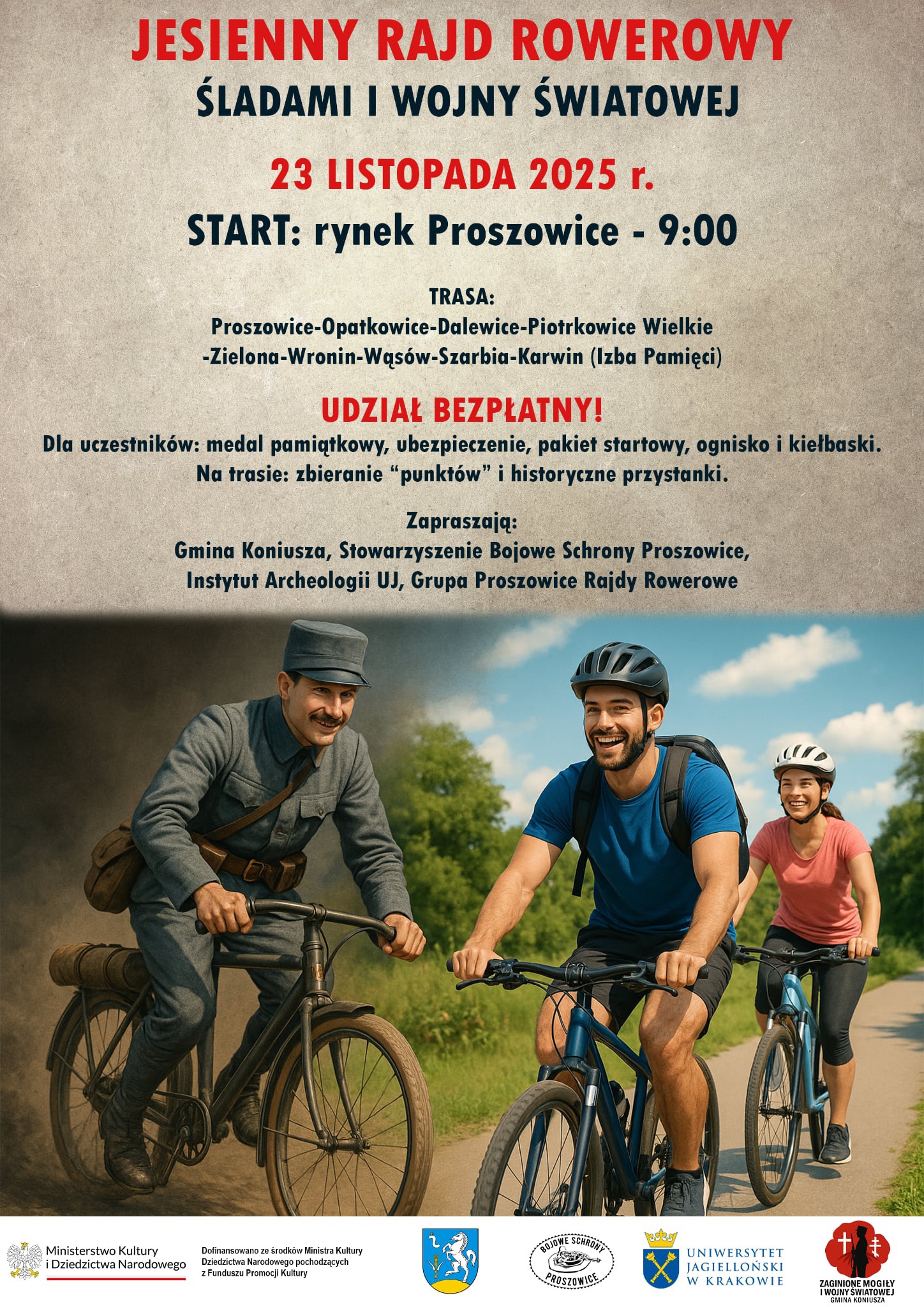 W najbliższą niedzielę o godz. 9.00 z proszowickiego Rynku wyruszy Jesienny Rajd Rowerowy śladami I wojny światowej. Bojowe Schrony Proszowice, które organizują akcję zapewniają, że rajd będzie nie tylko sportową przygodą, ale także podróżą w czasie – pełną historii, ciekawostek i malowniczych krajobrazów.